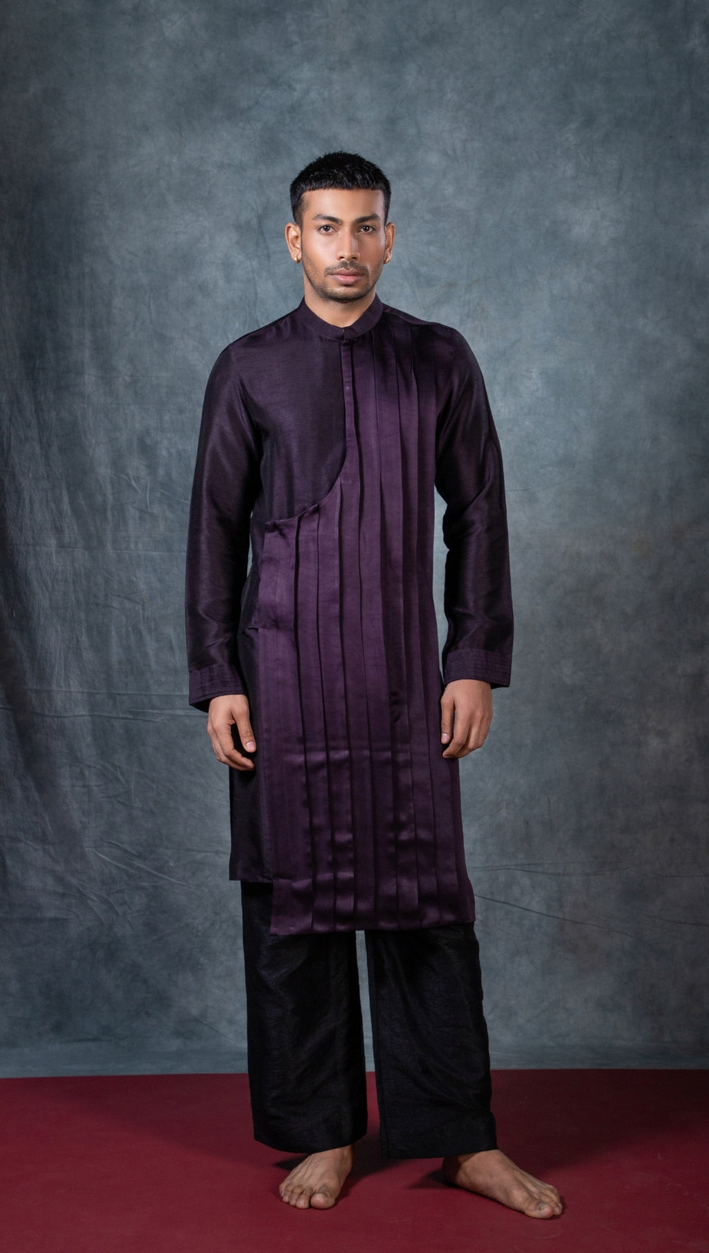 Introducing the Black Multi Layered Kurta from BASA by Sumesh, a sophisticated ensemble that includes a kurta and pyjama, crafted from luxurious cotton silk fabric. This kurta features a unique multi-layered design, adding dep...