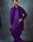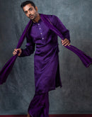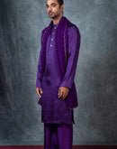 Step into elegance with the Purple Embroidered Kurta from BASA by Sumesh, a luxurious ensemble that includes a kurta, flared pants, and a silk dupatta. This set features hand-embroidered buta work all over the kurta, showcasing intricate craftsmanship and attention to detail. Crafted from premium silk satin fabric, the outfit offers a rich texture and a sophisticated sheen. Designed for comfort with a relaxed fit, it ensures ease of movement while maintaining a refined silhouette. The vibrant purple color adds a touch of regality, perfect for weddings, festive celebrations, and special occasions. Customization options are available to tailor the color to your personal preference, ensuring a perfect match for your style.